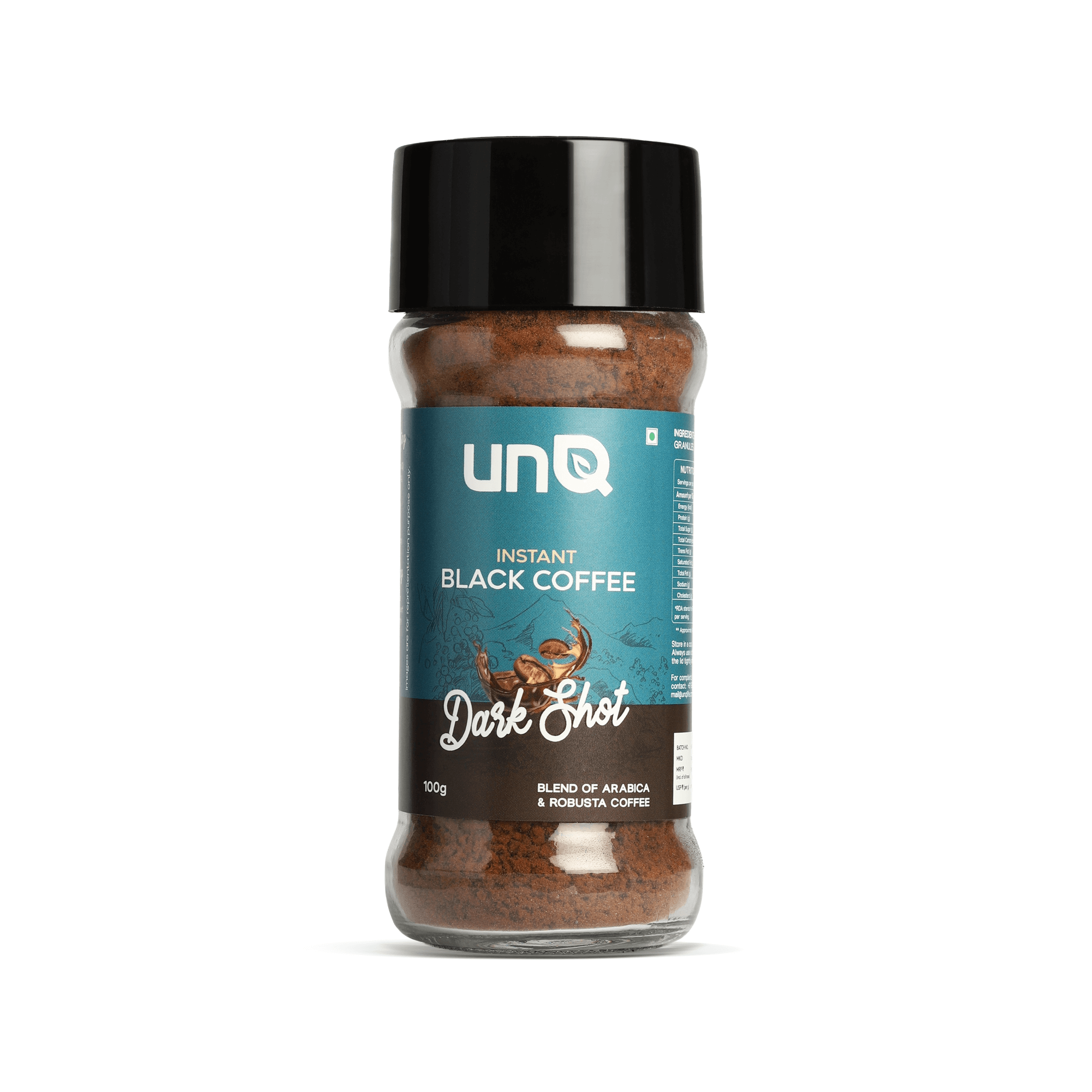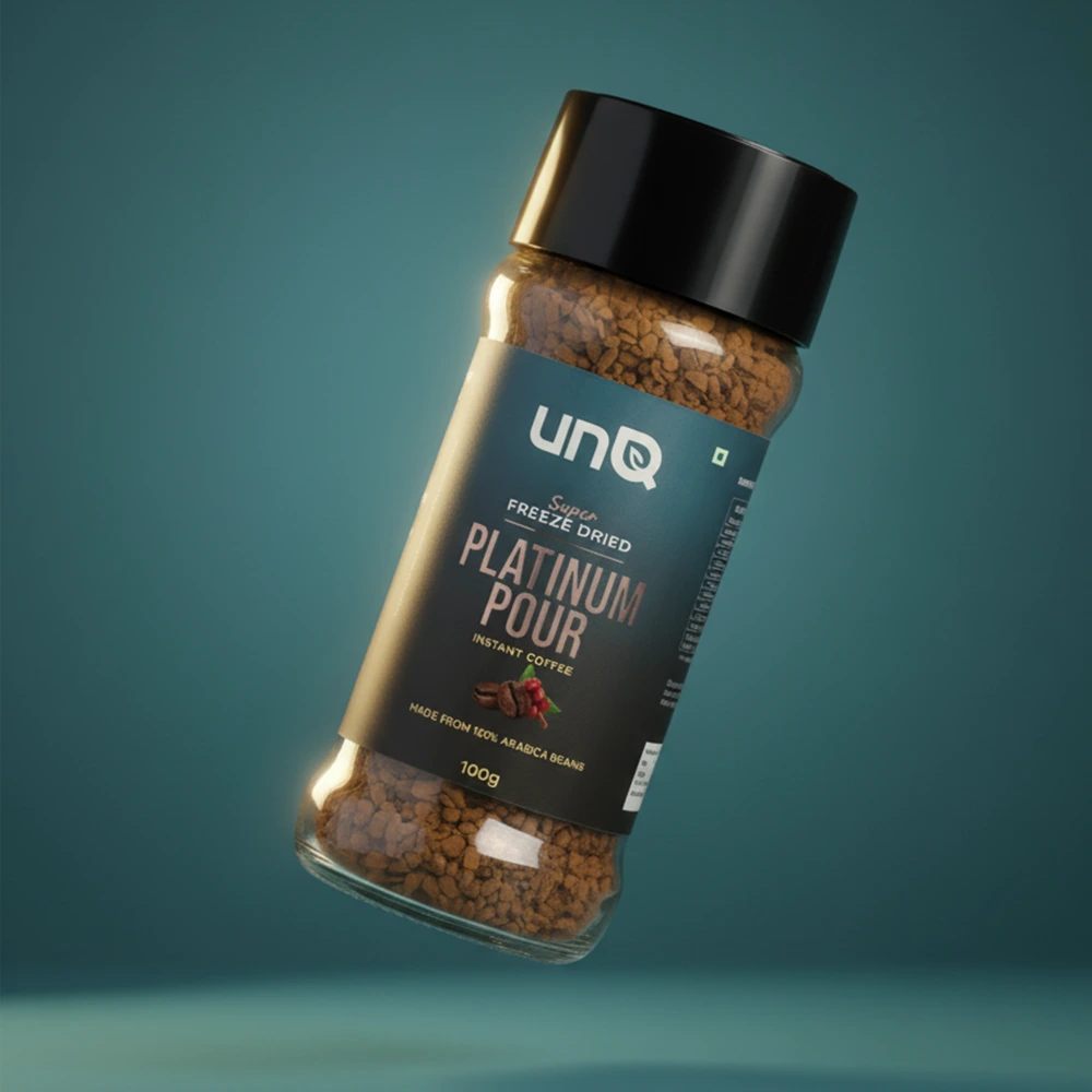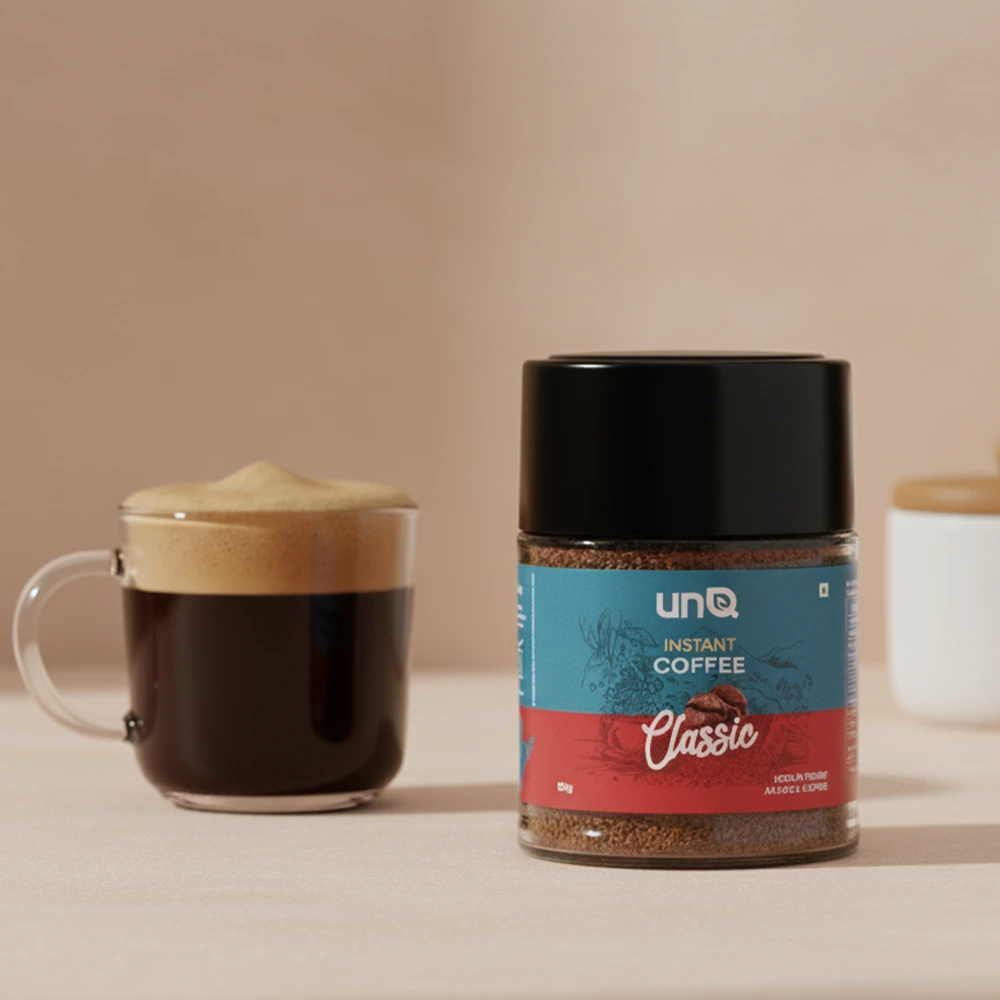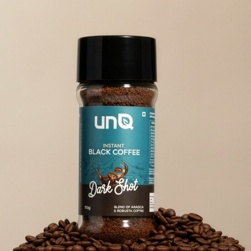 Meet your new coffee obsession. unQ's Dark Shot is instant coffee that actually slaps - a bold blend of Arabica and Robusta beans straight from Chikmagalur that hits different. No fancy equipment, no waiting around, just add hot water and you're good to go. This isn't your parents' instant coffee - it's rich, full-bodied, and actually tastes like real coffee. Perfect for those 3pm slumps, all-nighters, or when you need that caffeine fix ASAP. Comes in a sleek 100g jar that looks good on your desk or kitchen counter. For the coffee lovers who want quality without the hassle. Bold flavor, zero compromise, 100% convenience. That's the vibe.