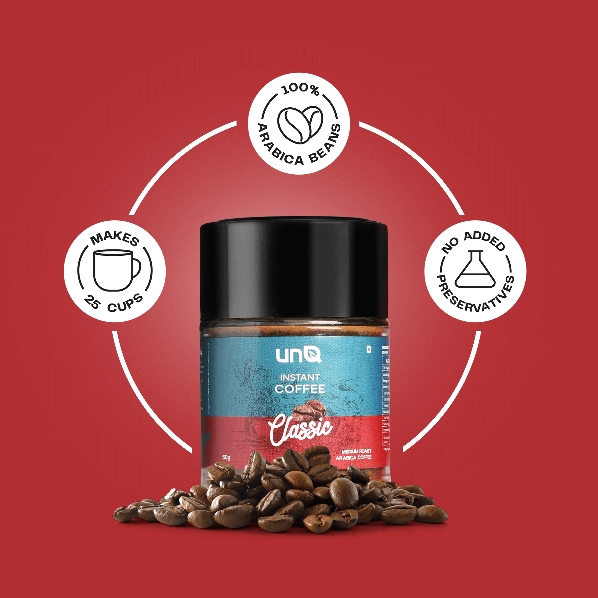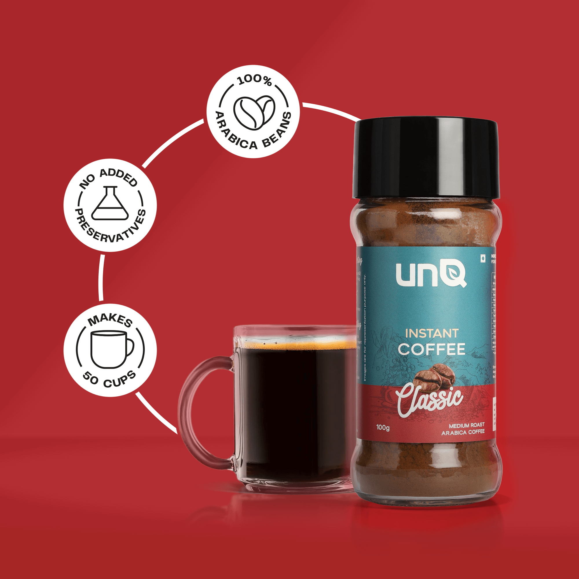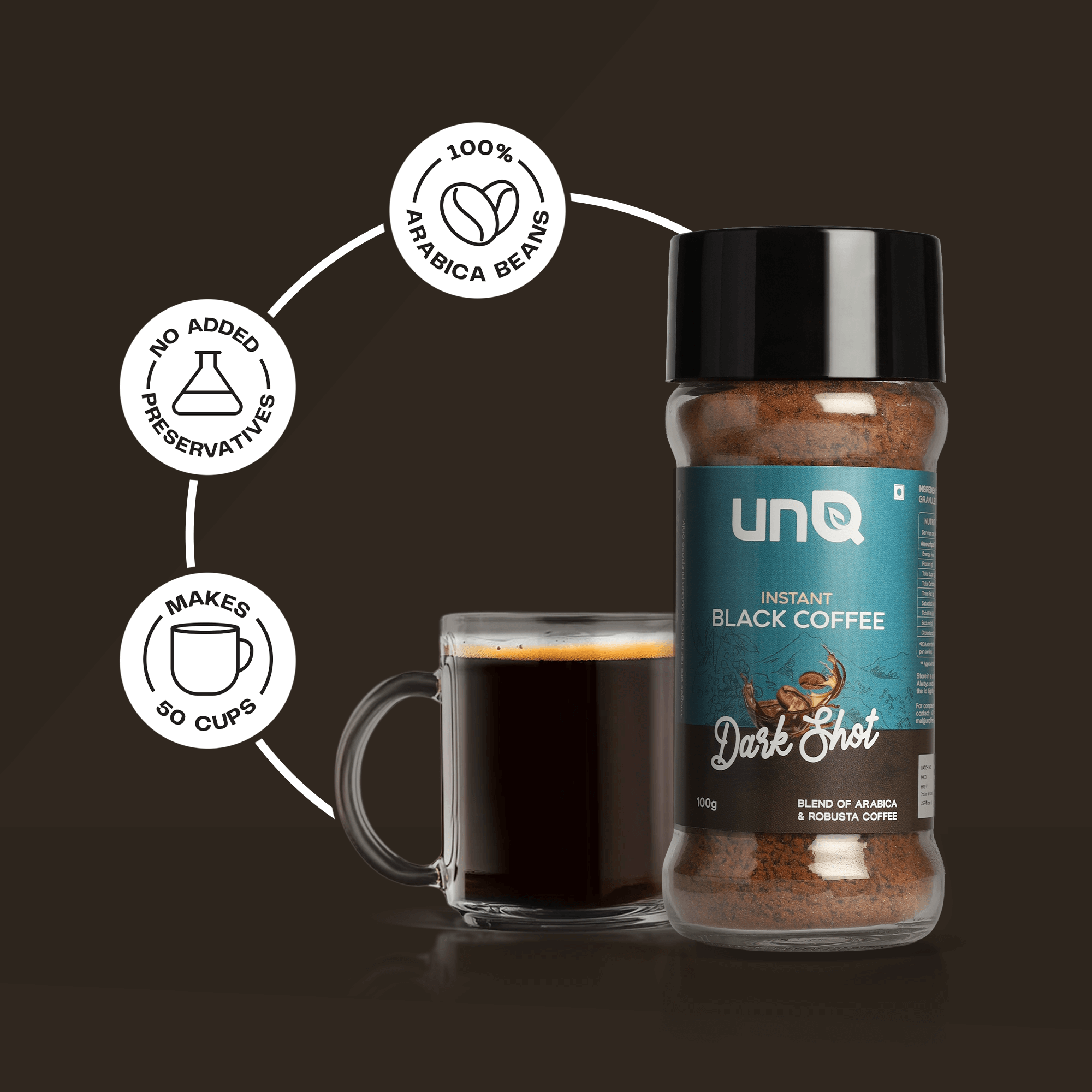 Meet your new coffee obsession. unQ's Dark Shot is instant coffee that actually slaps - a bold blend of Arabica and Robusta beans straight from Chikmagalur that hits different. No fancy equipment, no waiting around, just add hot water and you're good to go. This isn't your parents' instant coffee - it's rich, full-bodied, and actually tastes like real coffee. Perfect for those 3pm slumps, all-nighters, or when you need that caffeine fix ASAP. Comes in a sleek 100g jar that looks good on your desk or kitchen counter. For the coffee lovers who want quality without the hassle. Bold flavor, zero compromise, 100% convenience. That's the vibe.